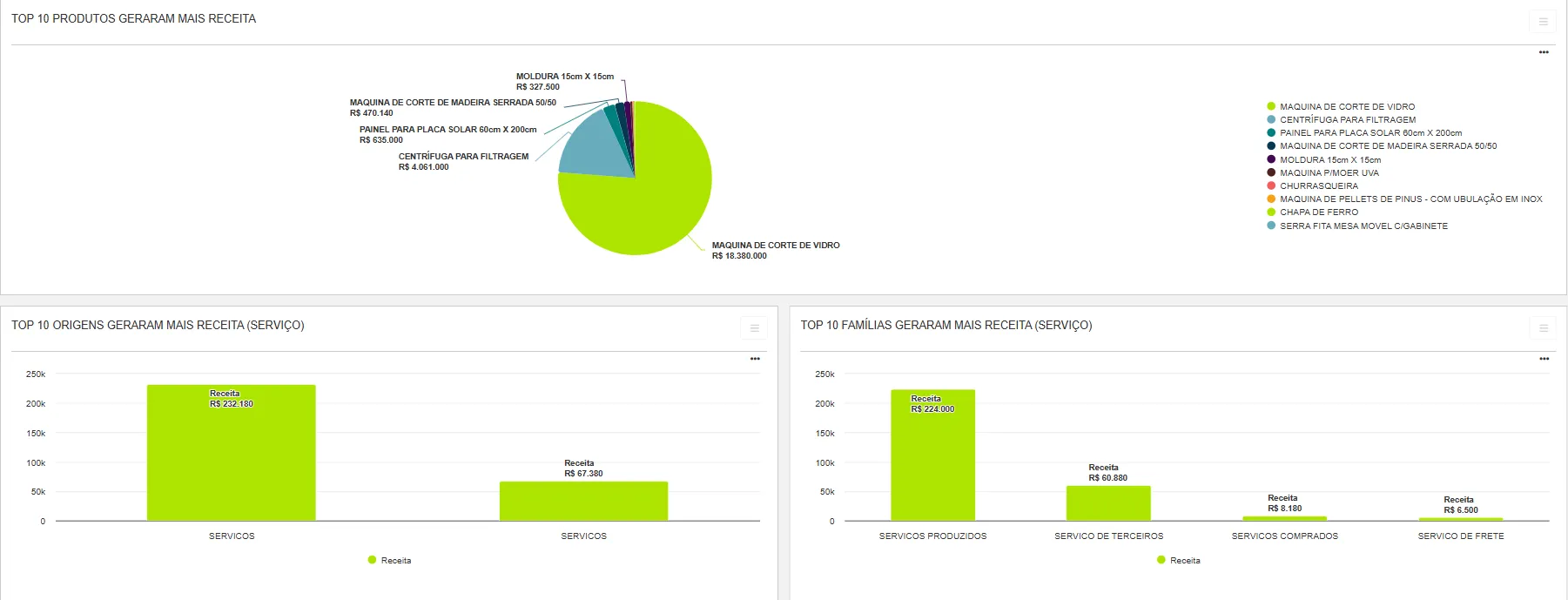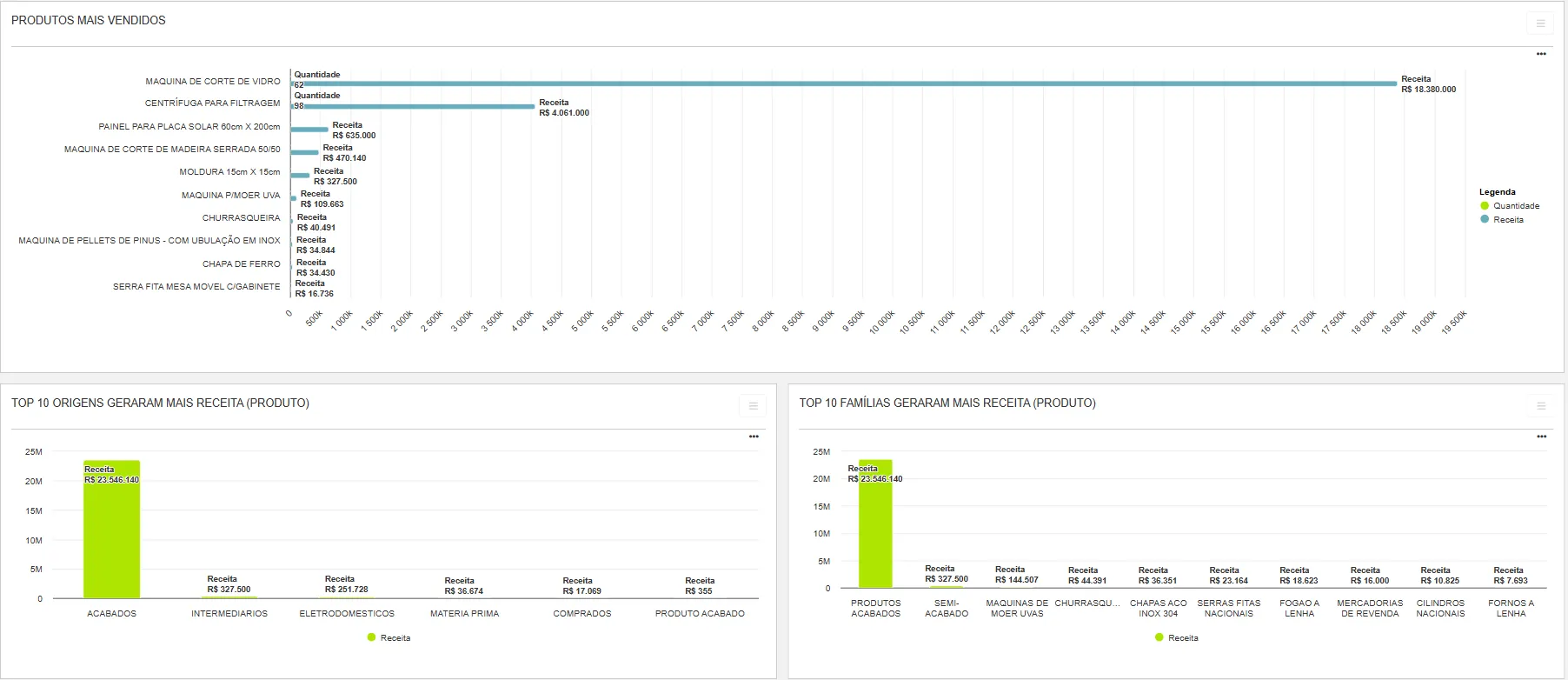 O sistema organiza análises de vendas e receita por cliente ou representante, além de apresentar os top 10 produtos e origens. Totalmente integrado ao módulo de Mercado do ERP XT e disponível na Plataforma X da Senior.