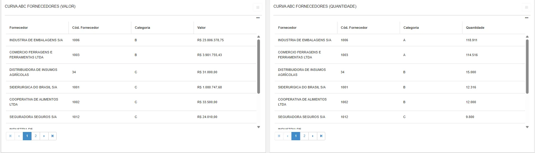O sistema proporciona a gestão inteligente de compras e fornecedores com Curva ABC. Análises de compras por categoria de produto e fornecedores, apresentando valores e quantidades comprada, e o percentual de produtos por categoria. Totalmente integrado ao módulo de Suprimentos do ERP XT e disponível pela Plataforma X da Senior.